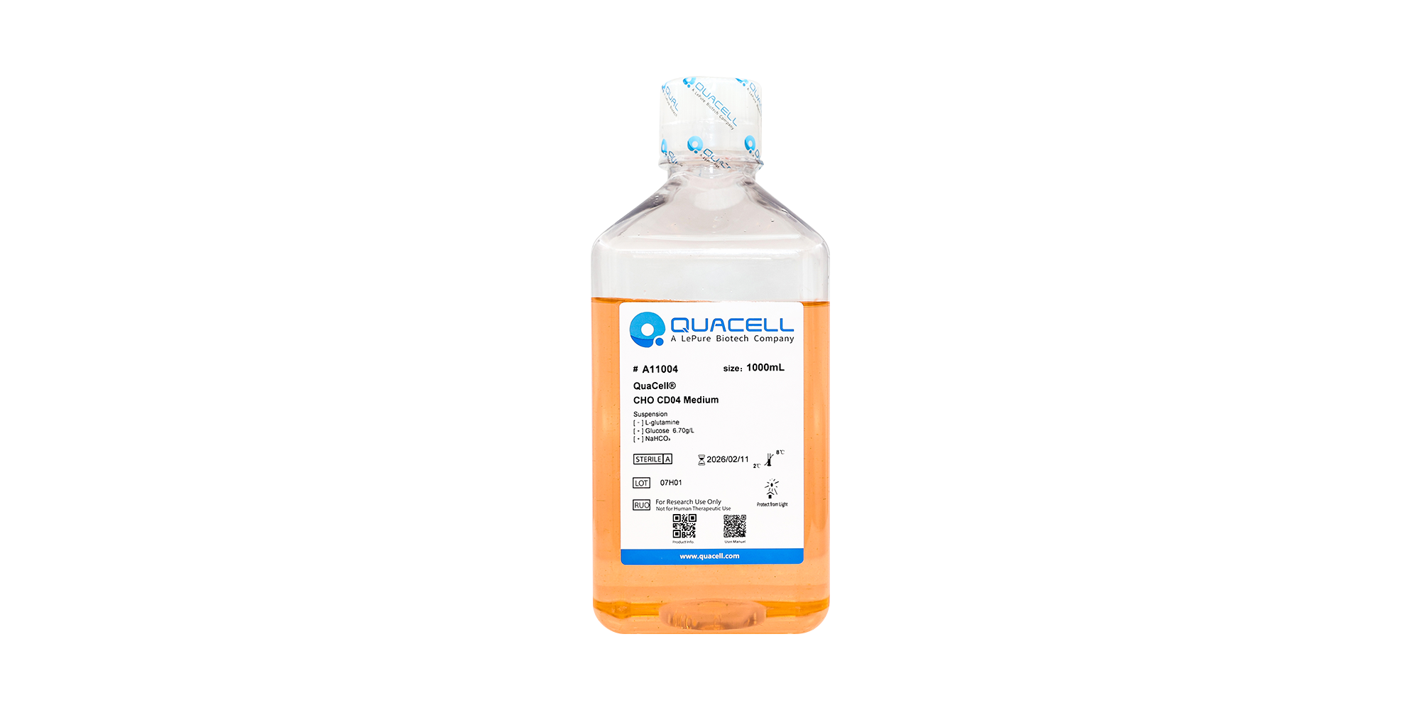 QuaCell® CHO CD04 provides a rich environment for high-density CHO cell growth. QuaCell® CHO CD04 is a serum-free, animal component-free, chemically defined medium developed for CHO suspension culture to express antibodies and protein products. CHO suspension cultures can be subculture directly into QuaCell® CHO CD04 from the serum-supplemented or serum-free medium with little or no adaptation. QuaCell® CHO CD04 is formulated without hypoxanthine, thymidine, and L-glutamine, suitable for DHFR, glutamine synthetase (GS System) screening system.